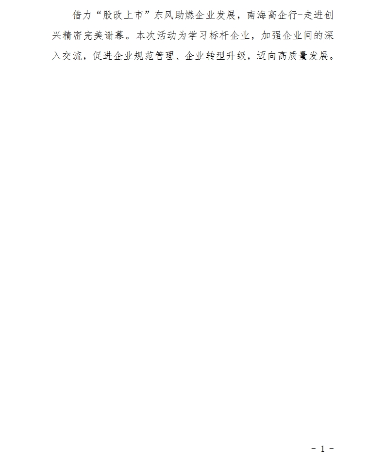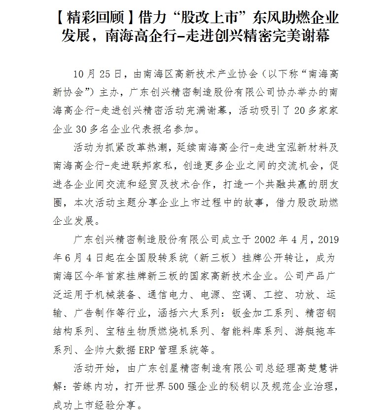 【活動回顧】借力“股改上市”東風(fēng)助燃企業(yè)發(fā)展,南海高企行-走進(jìn)創(chuàng)興精密完美謝幕