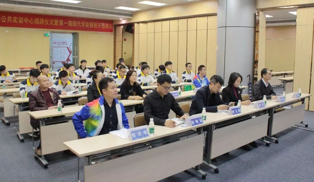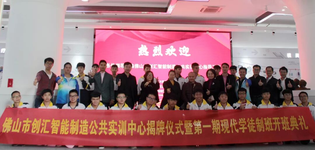 為完善職業(yè)教育和培訓(xùn)體系,充分發(fā)揮廣工大研究院與南海鹽步職業(yè)技術(shù)學(xué)校在智能制造業(yè)產(chǎn)業(yè)集群和職業(yè)教育的優(yōu)勢,11月19日下午,“佛山市創(chuàng)匯智能制造公共實(shí)訓(xùn)中心”揭牌儀式暨第一期現(xiàn)代學(xué)徒制班開班在廣工大研究院舉行。鹽步職業(yè)技術(shù)學(xué)校焦玉君校長、學(xué)校黃桂勝部長、張濟(jì)明部長,廣工大研究院熊薇副院長、3D打印事業(yè)部陳曉旭主任,佛山先臨三維科技有限公司技術(shù)總監(jiān)陳天平,佛山嗎卡工程技術(shù)有限公司技術(shù)總監(jiān)王暢,廣州市云尚教育科技有限公司總經(jīng)理何飛祥,佛山市杰訊新材料科技有限公司經(jīng)理鄧允西等相關(guān)負(fù)責(zé)人和20多名第一期現(xiàn)代學(xué)徒制班的同學(xué)參與了本次開班儀式。
